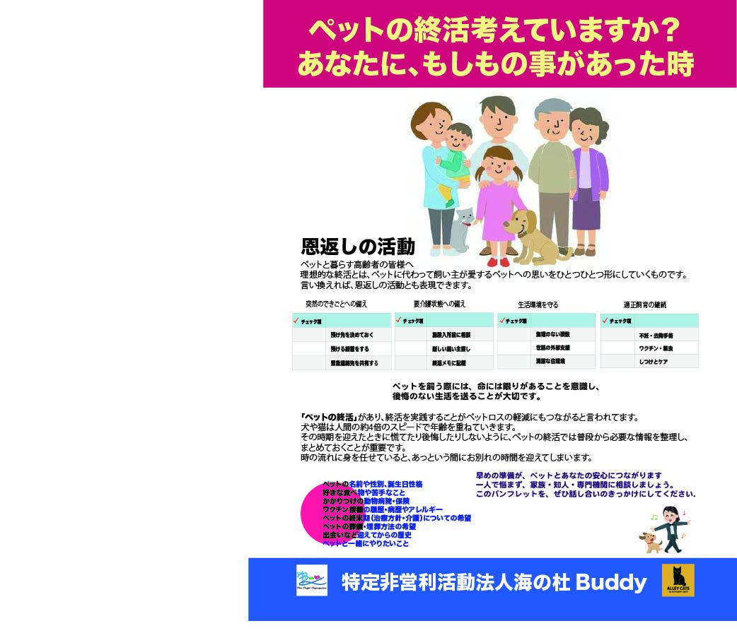 地球を守る、自然環境の保護活動を積極的に推進していくも海の杜Buddyの志命のひとつです。テーマは母の愛「海(しいな)愛」の哲学に基づいています。 人が成長し続けるということが人の本質であるように、自然とは、地球と共に存在し続けるということがその本質です。海愛の哲学に基づき、海の杜Buddyは、子ども達に小さな命を大切にすることで、思いやり溢れる情織豊かな子供が育つ地域環境を整えるため、人類の一番身近な友達、犬・猫の保護など身の回りのできることから始めます。そのような環境からBuddyの卒業生が、自分が興味を持つ大好きなことをビジネスチャンスとして起業や就労することで、技術者・デザイナー・デレクター・獣医・看護師など関連企業者を育つ事ができるイノベーションを生み出し、新たな就労関係・新事業を開拓するお手伝いをいたします。それらを通じて保護した子(小動物)たちが、老人ホームでの癒やしとか児童養護施設から家庭から、家族として出迎えていただけるよう。活動します。